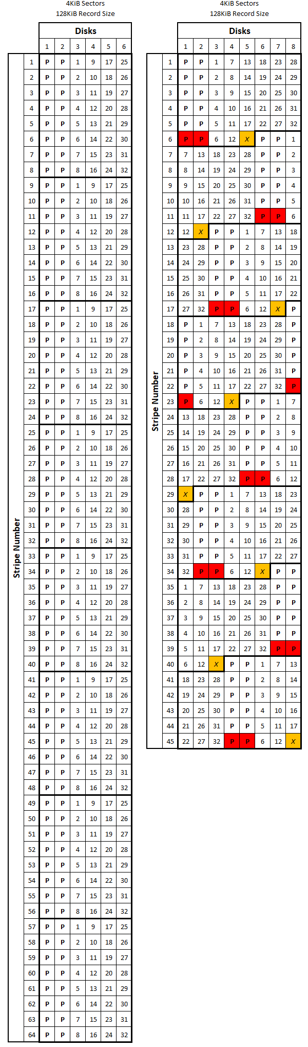 All of this basically means that 24 SATA 3 drives connected to a SAS 2 expander backplane and then to a SAS 2 HBA via a single SAS 2 cable will see about 24 gigabits per second of bandwidth. 24 drives and 24 gigabit of bandwidth... that gives you 1 gigabit per second per drive. Note that's bits per second, not bytes. You would get about 125 megabytes per second on each drive. SAS uses 8b/10b encoding which has a 20% overhead, so you'll see closer to 100 megabytes per second per drive. That's starting to come a bit close to a bottleneck which is something that I really wanted to avoid. SAS3, on the other hand, with its 48 gigabits per second bandwidth and its fancy DataBolt technology would support about 200 megabytes per second per drive for 24 drives connected via a single SAS3 cable. That's not too bad.
