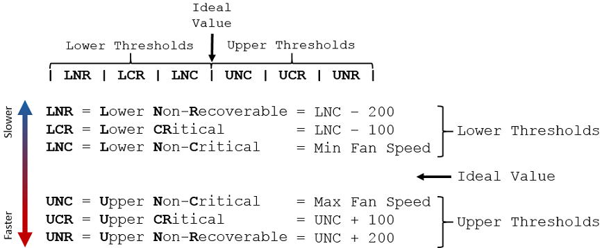 I had to do some major modifications to the Perl-based script from Stux on the FreeNAS forum. I'm not great with Perl, so the first thing I did was to port everything to Python. From there, I could more easily add in the functionality I needed for more fan zones. I added all the serial numbers for all my drives into the python fan control script along with an identifier that told the script which shelf each drive belonged to. The script loops through all the disk device nodes and runs smartctl on each disk, finds the serial number from the output, and matches the serial number to the identifiers I programmed in to know which shelf the disk is installed in. It then determines the max temperature of the disks in each shelf, again from smartctl, and sends out the fan control commands accordingly. I wrote the updates such that the script can support an arbitrary number of shelves. The number of shelves is set in a variable at the top of the script then everything just loops that number of times. I also made it so the fan speed to temperature curve could have an arbitrary number of points on it. The script runs through a list of temperatures, finds the closest match, then picks the corresponding duty cycle. I tested the script with 30 different points on the CPU fan speed curve and it worked just fine.