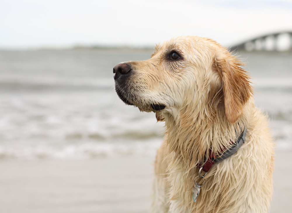 Our wonderful Golden Retriever on the beach at Somers Point Dog Park